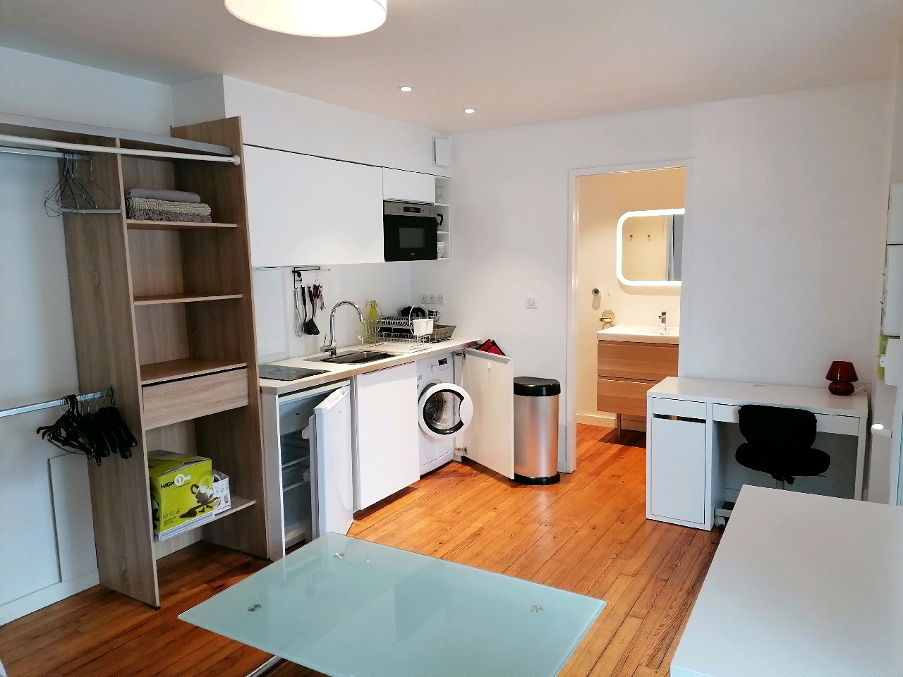 Au 1er et dernier étage d’une petite copropriété de 1900 entièrement rénovée en 2016 sans ascenseur. T1 meublé et équipé de 19 m² très lumineux et au calme donnant dans une cour intérieure.