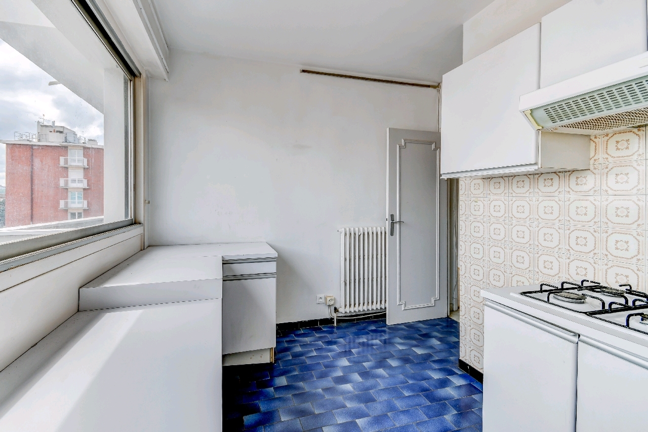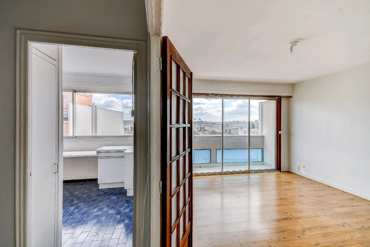 RARE SUR LE SECTSUR !! A visiter sans tarder !! Au 5ème et dernier étage d’une petite copropriété bien entretenue de 1965 AVEC ascenseur. Grand T2 fonctionnel de 52 m² qui a beaucoup de potentiel, bien agencé et très lumineux. Il est composé d’un couloir avec placards distribuant toutes pièces, d’une pièce de vie avec parquet avec accès sur un balcon et pouvant s’ouvrir sur la cuisine, d’une chambre de 11 m², d’une salle de bain et un WC séparé.