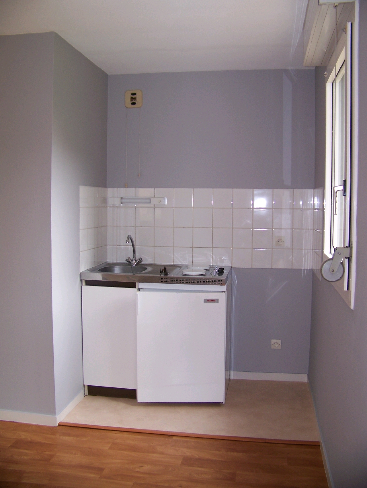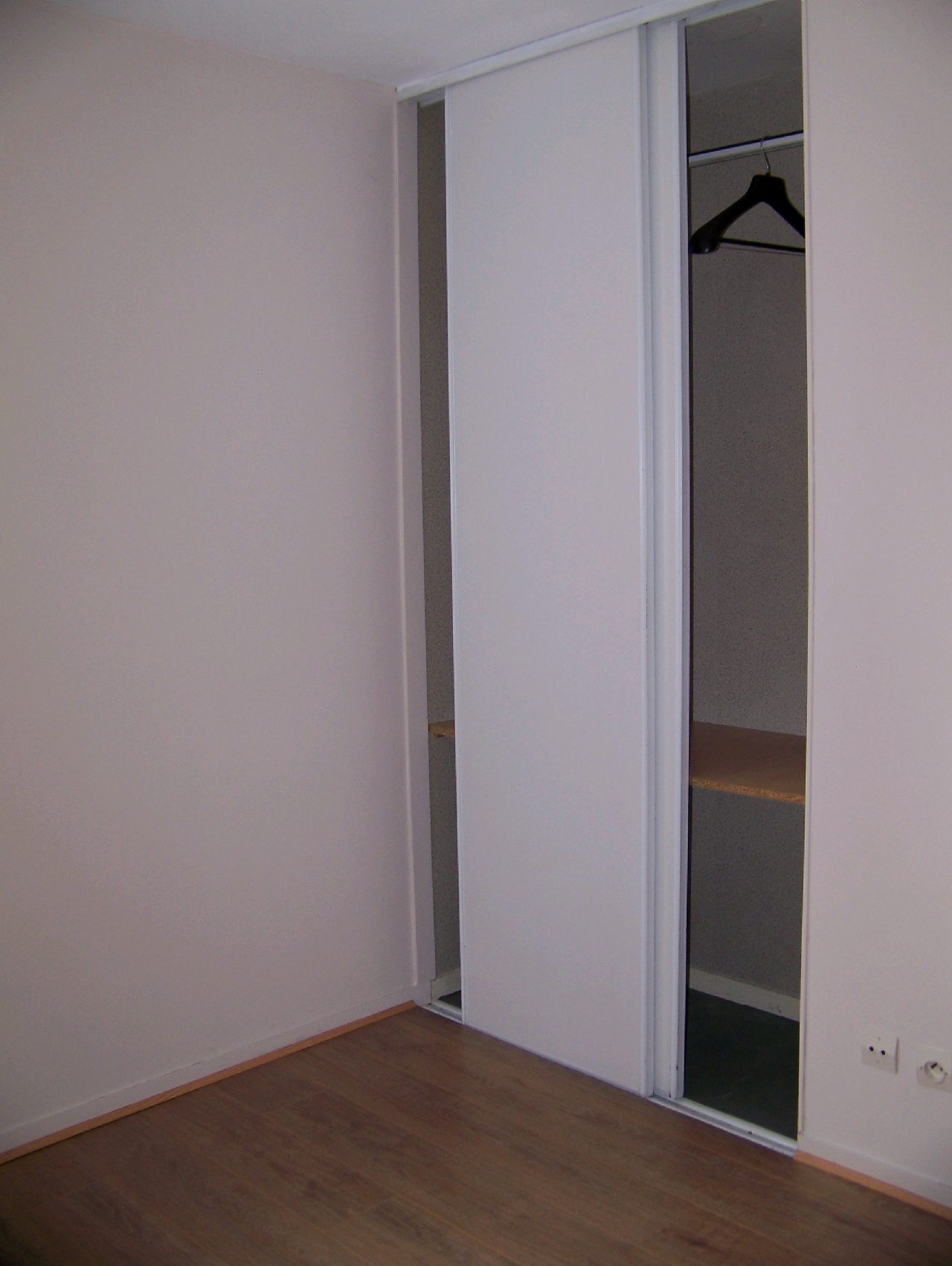 Entrée avec placard, séjour avec kitchnette, chambre avec placard, salle de bain, WC
